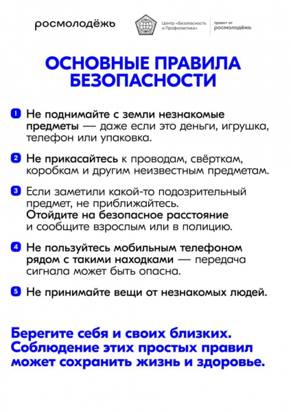 Образовательный центр «Безопасность и Профилактика» подготовил памятку о том, как действовать при обнаружении подозрительных предметов. Передайте эту информацию своим близким и знакомым!