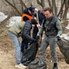 Неожиданный снегопад не помешал коллективу театра "Бенефис" выйти на традиционную весеннюю уборку