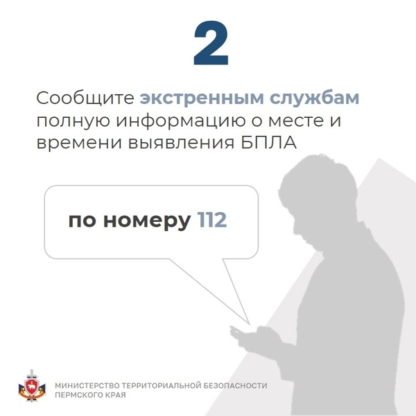 Основная рекомендация - не паниковать и не приближаться к БПЛА, это может быть крайне опасно. Оь обнаруженном БПЛА следует сообщить по телефону 112. Назовите оператору ФИО и место обнаружения беспилотника.