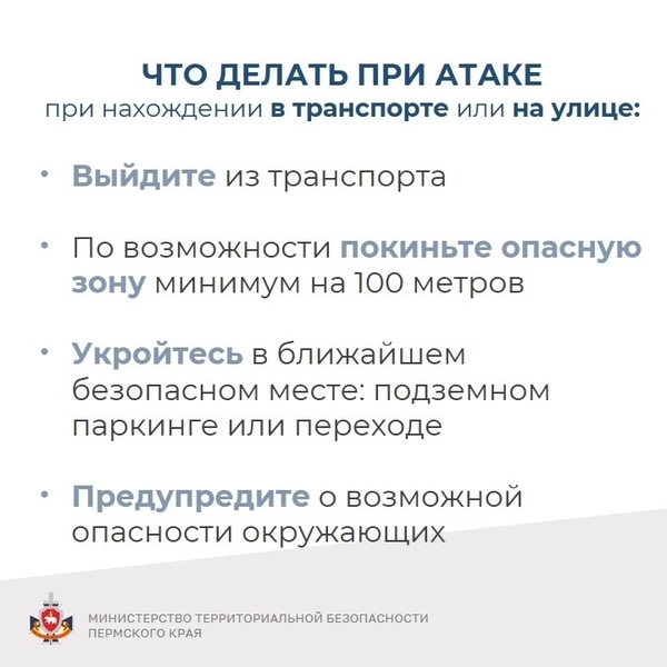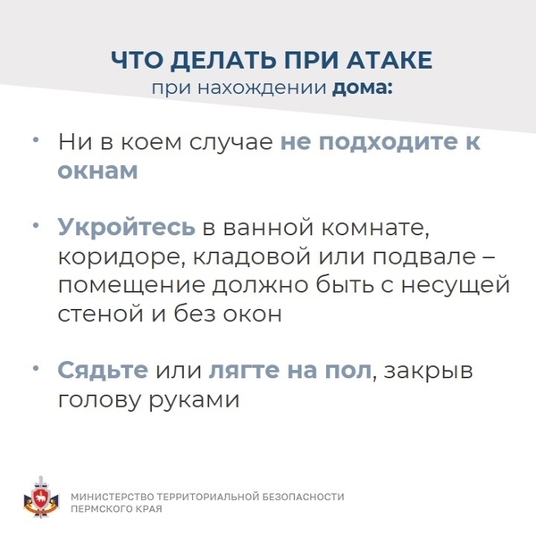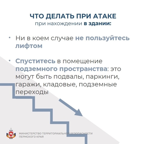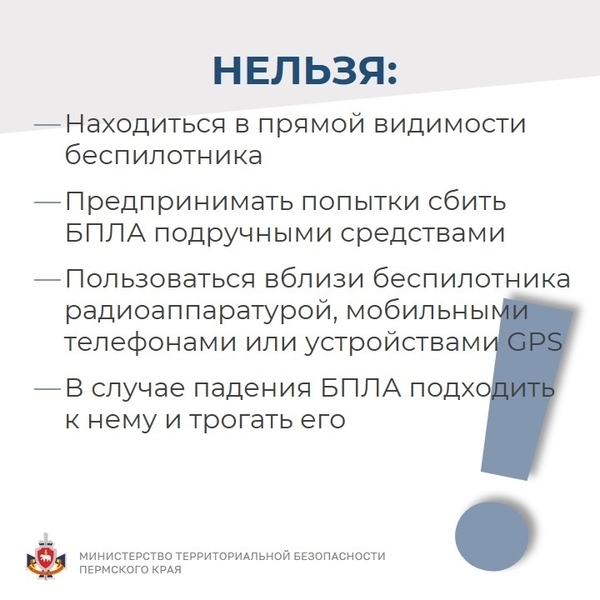 Министерство территориальной безопасности Пермского края опубликовало карточки, разъясняющие, что нужно (и чего не нужно) делать, если вы заметили беспилотный летательный аппарат.