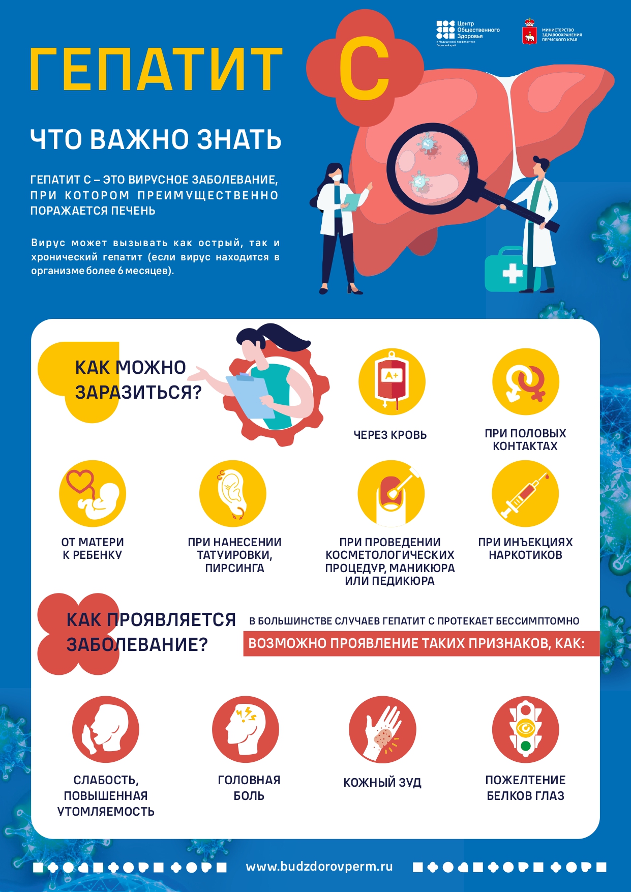 Дорогие друзья, уважаемые зрители! Берегите своё здоровье, ответственно относитесь к нему! С 9 по 15 марта проходит Неделя по борьбе с заражением и распространением хронического вирусного гепатита С. Предлагаем ознакомиться с полезной инфографикой, посвященной этому аспекту сохранения крепкого здоровья!