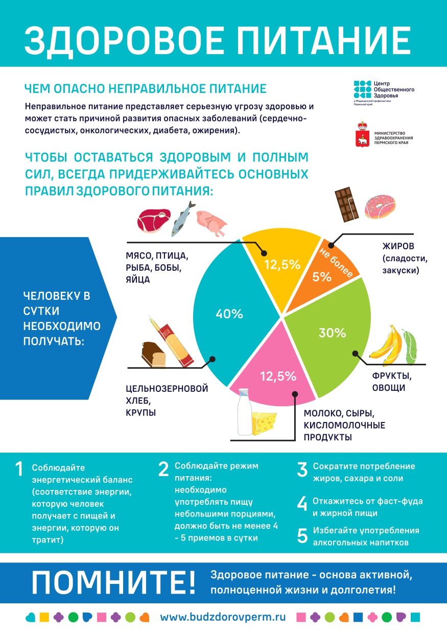 В рамках недели популяризации потребления овощей и фруктов Центр общественного здоровья предлагает ознакомиться с полезной инфографикой, посвященной здоровому питанию.