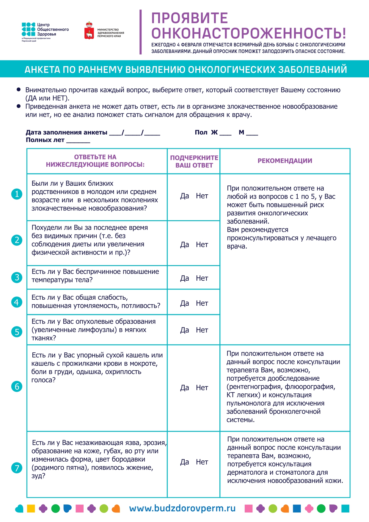 Важная анкета! Центр общественного здоровья предлагает вам небольшую, но важную проверку рисков возникновения опасного заболевания!