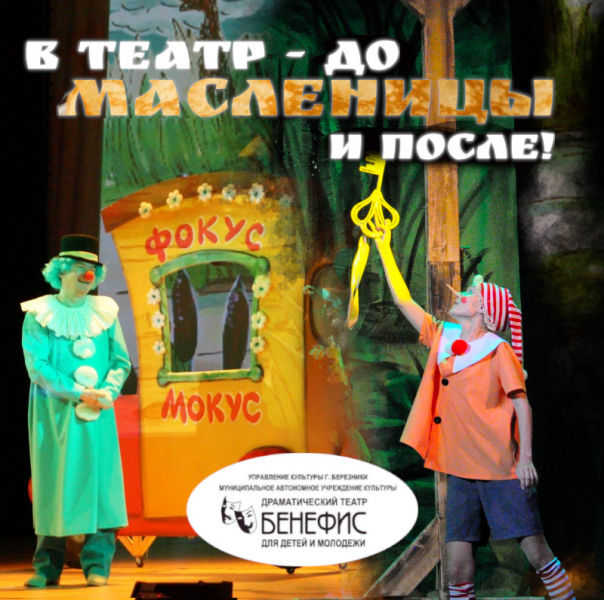 Но по её окончании мы просим вас не уходить далеко от театра - ведь уже в час дня в Парке культуры города Березники состоится весёлый праздник Масленицы! Ну а когда праздник завершится - мы вновь приглашаем вас на сказку в театр «Бенефис»! В 15:00 начнётся чудесная история «Приключения Фунтика» (0+)!